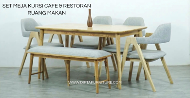 Bagi cafe atau restoran, Dipta Furniture juga melayani pembuatan kursi dan meja minimalis yang disesuaikan dengan konsep usaha. Terdapat pilihan finishing warna dan bahan kain, sehingga setiap furniture benar-benar unik sesuai permintaan pelanggan.